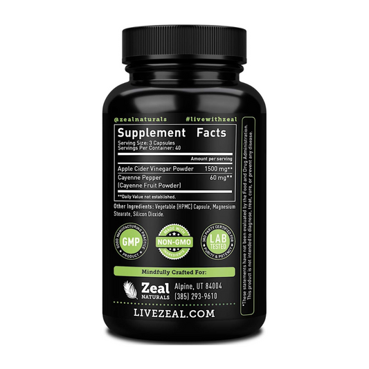 Zeal Naturals Apple Cider Vinegar 1560mg Supplement 120 Capsules