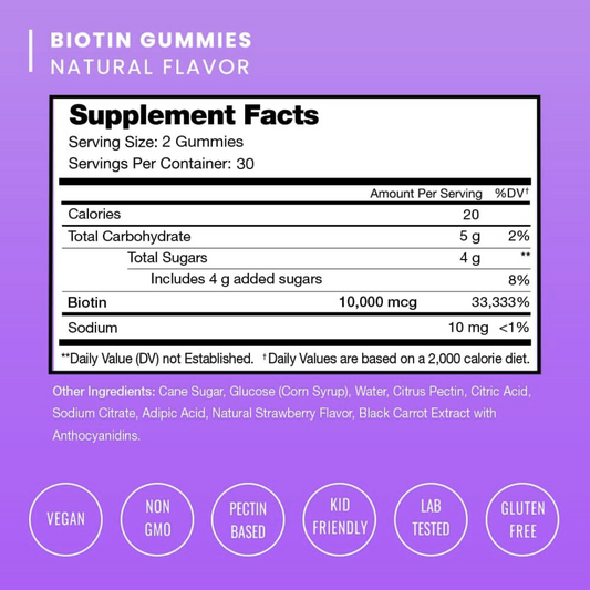 Nutra Champs Biotin Hair, Skin & Nails Gummies Natural Strawberry Flavor 60 Vegan Gummies