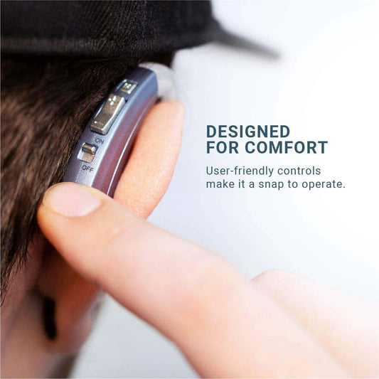 Digital Hearing Amplifier by Britzgo BHA-220. 500hr Battery Life, Modern Blue, Doctor and Audiologist designed