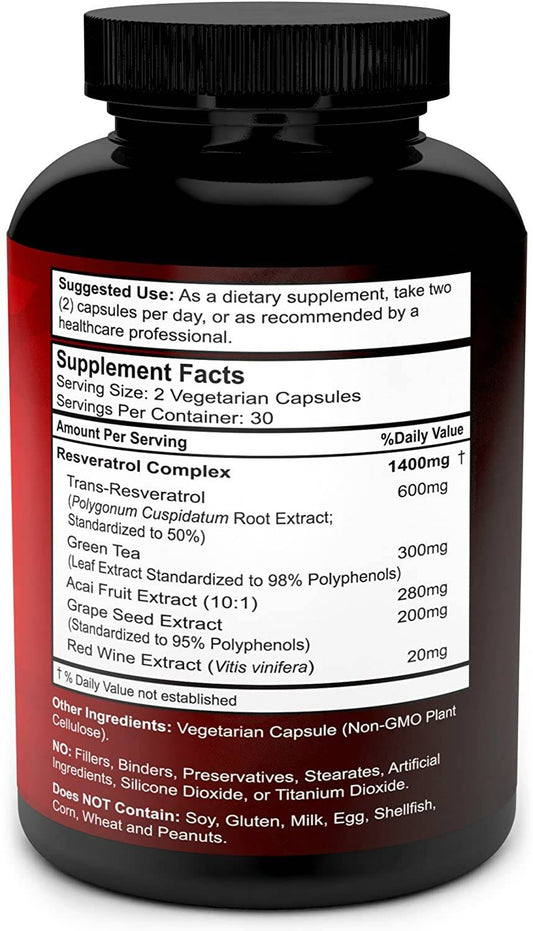 Divine Bounty Resveratrol Supplement 1400mg with Grape Green Tea Acai with Red Wine Extract, 60 Vegetarian Capsules