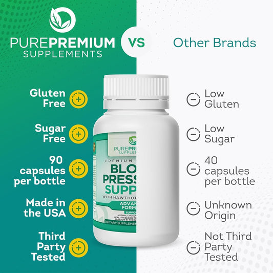 PurePremium Blood Pressure Support with Hawthorn & Hibicus Supplement 90 Capsules