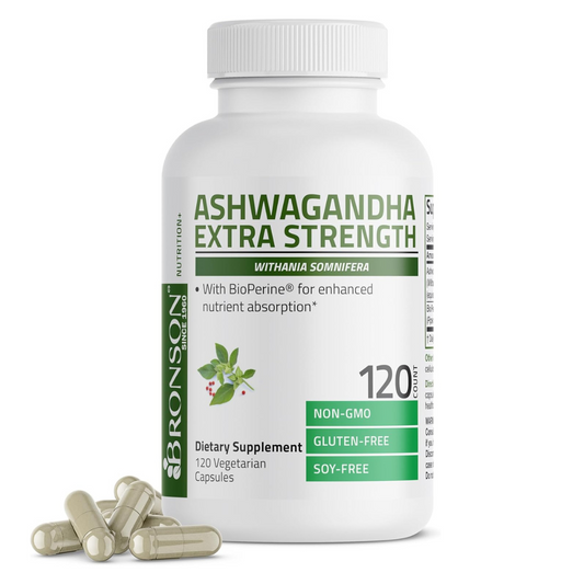 Bronson Ashwagandha Extra Strength Withania Somnifera Supplement 120 Vegetarian Capsules