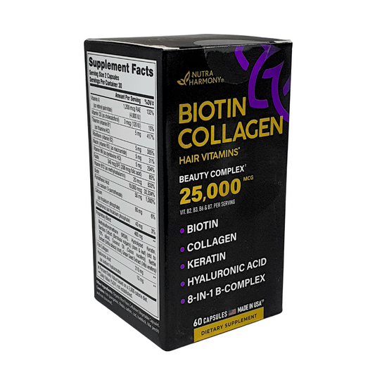 Nutra Harmony Biotin Collagen Hair Vitamins Beauty Complex 25000mcg Supplement 60 Capsules