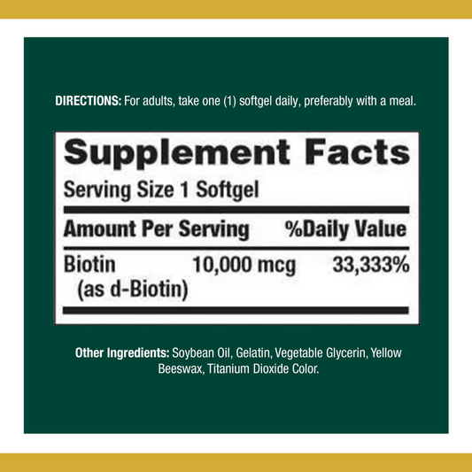 Nature's Bounty Biotin 10,000 mcg Vitamin Supplement 120 Rapid Release Softgels