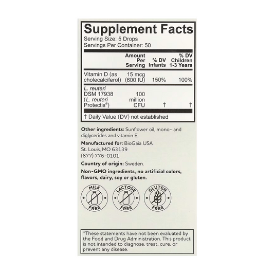 Biogaia Baby Probiotic Drops Immune Active Optimal Protection 600 IU Supplement for 0-36 Months (10ml/0.34 oz)