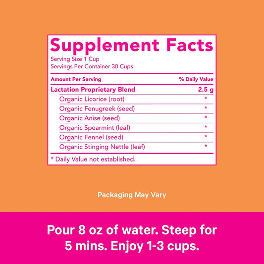 Pink Stork Lactation Nursing Support Tea, Herbal Mint Tea Flavor, 15 Sachets Makes 30 Cups