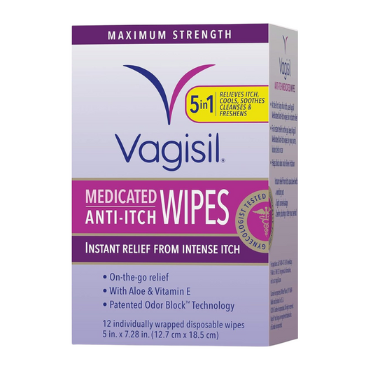 Vagisil 5 in 1 Medicated Anti-Itch Wipes (12.7cm x 18.5cm) 12 Wipes
