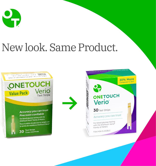 OneTouch Verio Test Strips Value Pack, For Blood & Glucose Testing, 30 Count