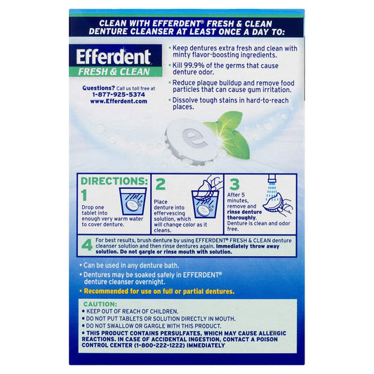 Efferdent Plus Mint Anti-Bacterial Denture Cleanser (126 Tablets) Fresh & Clean
