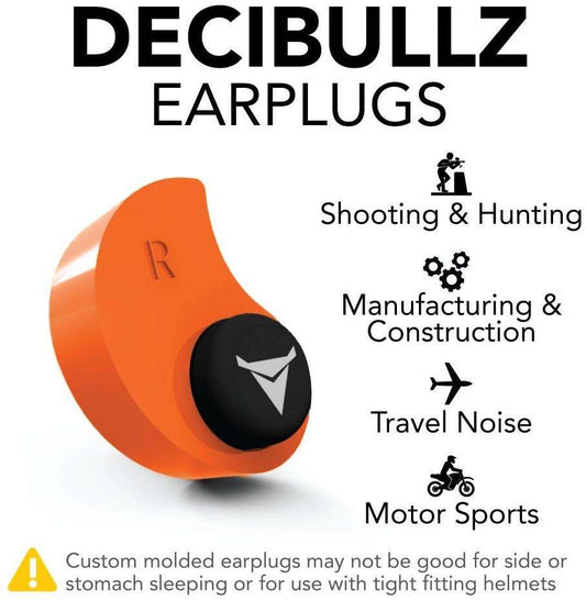 Decibullz Custom Molded Earplugs, 31dB (NRR 31) Orange, 1 Pair