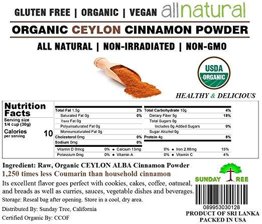 100% ORGANIC PURE Premium CEYLON Cinnamon Powder, SRI LANKA, 16. oz. / 1 lb (PACKAGING MAY VARY)