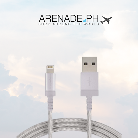Double Braided Nylon USB Cable with Lightning Connector, Silver, 10ft 3m