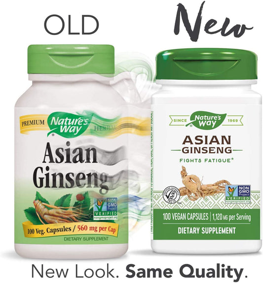 Nature's Way Premium Herbal Asian Ginseng 1,120mg per serving, 100 Veggie Caps