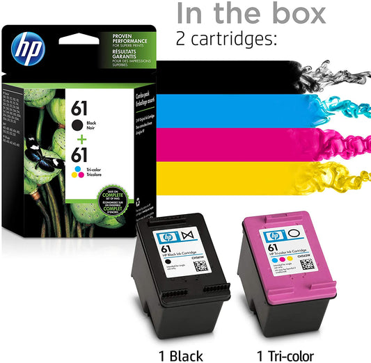 HP 61, 2 Ink Cartridges, Black and Tri-color CH561WN, CH562WN