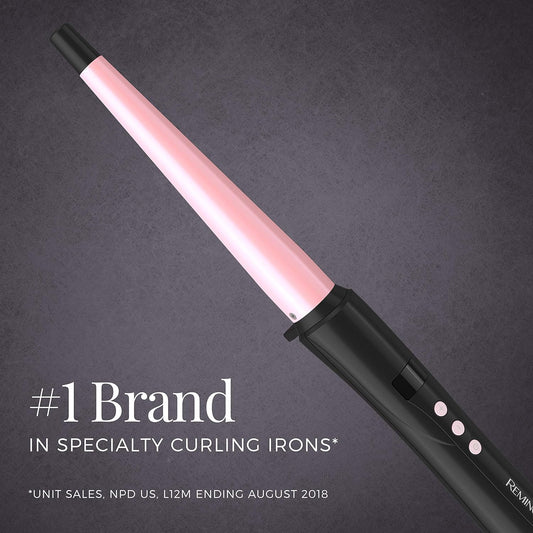 REMINGTON Pro Pearl Ceramic Conical Curling Wand, Digital Controls + 10 Heat Settings, Black/Pink, CI95AC5 1-1/2
