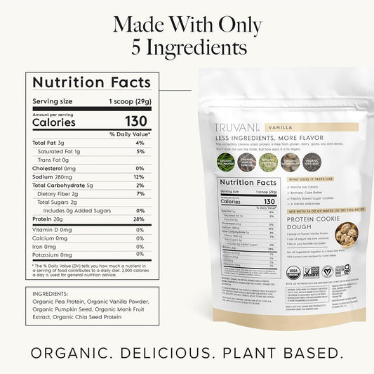 Truvani Organic Plant Based Protein Vanilla Flavor, 594 g / 20.95 oz