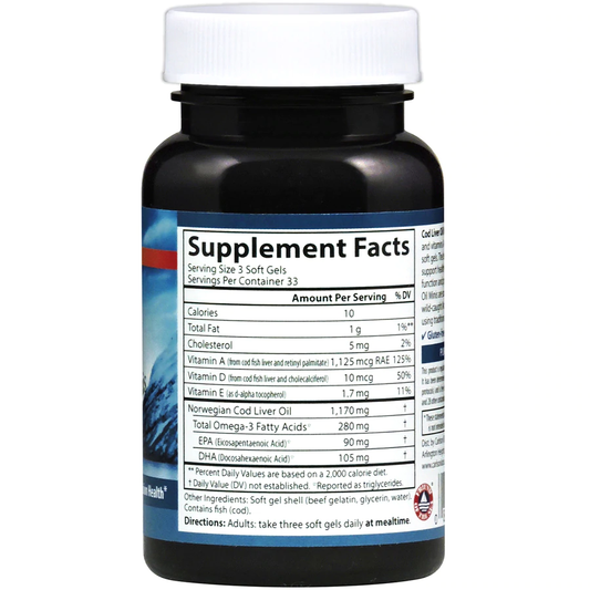 Carlson Wild Norwegian Cod Liver Oil Gems, 460 mg Omega-3s, Natural Lemon 30 Softgels