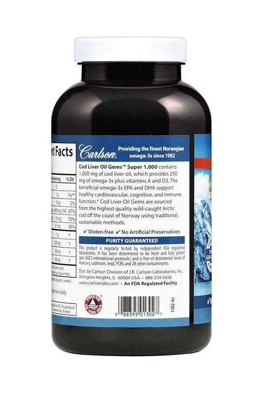 Carlson Cod Liver Oil Gems Super 1,000 mg 250 Softgels