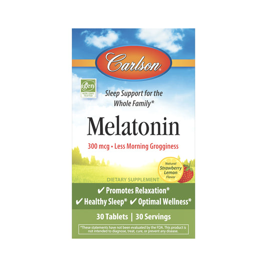 Carlson Melatonin 300mcg Natural Strawberry Lemon Flavor 30 Tablets Promotes Relaxation, Healthy Sleep & Optimal Wellness