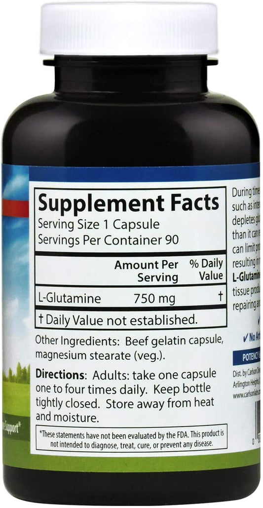 Carlson L-Glutamine 750 mg, 90 Capsules Free Form Amino Acid