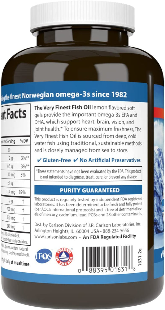 Carlson The Very Finest Fish Oil 700 mg Omega-3 Lemon Flavor 120 Softgels