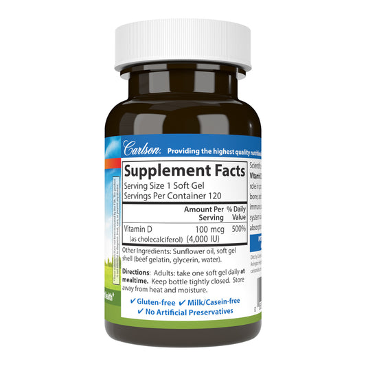 Carlson Vitamin D3 4,000 IU (100mcg) 120 Soft Gels Bone Support, Immune Function & Heart Health