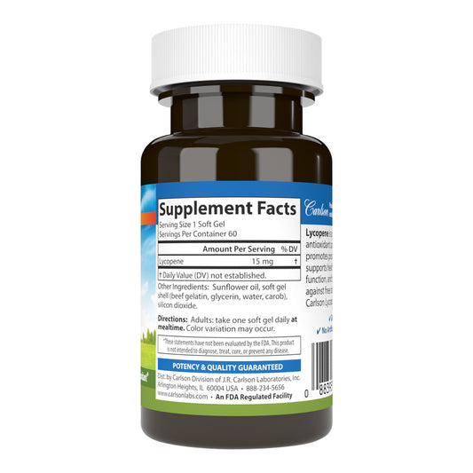 Carlson Tomato-Free Lycopene 15mg 60 Soft Gels Prostate Health, Cardiovascular Support & Antioxidant