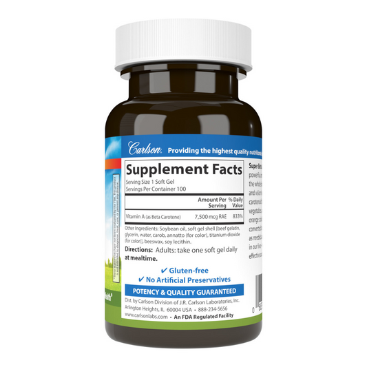 Carlson Super Beta Carotene 25,000IU (7,500 mcg RAE) 100 Softgels