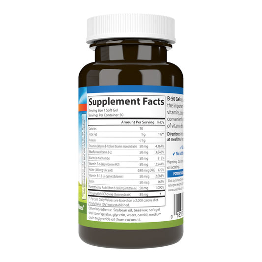 Carlson B-50 Gels Vitamin B Complex 50 Soft Gels Cellular Support, Energy Production & Optimal Wellness