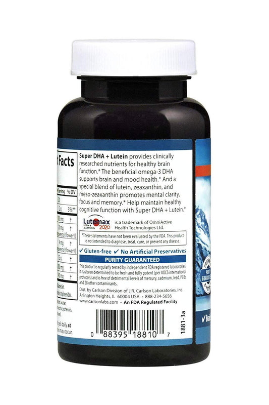 Carlson Super DHA + Lutein 60 Soft Gels Brain Support, Cognitive Function & Mental Clarity