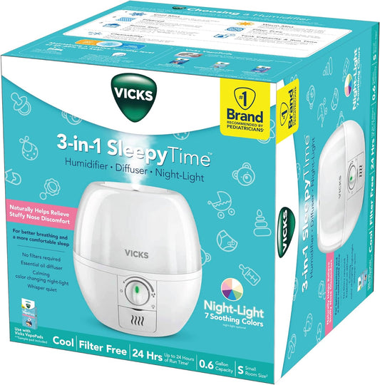 Vicks 3-In-1 SleepyTime Humidifier, Diffuser, Night-Light (0.6 Gallon) Small Room Size