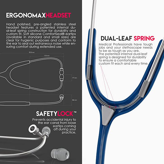 MDF Lightweight Stethoscope MDF4 Navy Blue Tube, Silver Chestpiece-Headset, MDF 747XP04