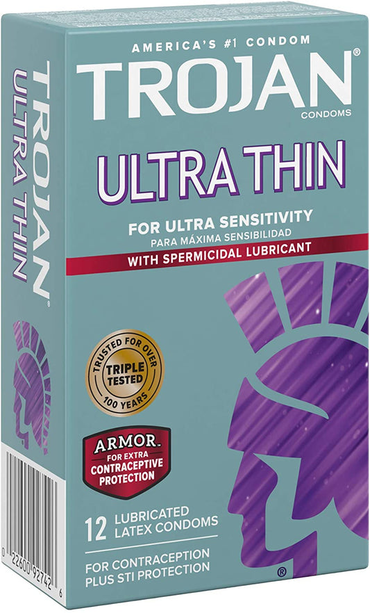 Trojan Condom Sensitivity Ultra Thin with Spermicidal Lubricant (12 Count)