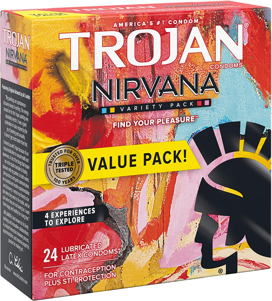 Trojan Nirvana Variety Pack Find Your Pleasure Value Pack Condoms 24 Lubricated Latex Condom