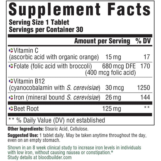 MegaFood Blood Builder with Beets Orange Broccoli Iron & Multivitamin - 90 Tablets PACKAGING MAY VARY