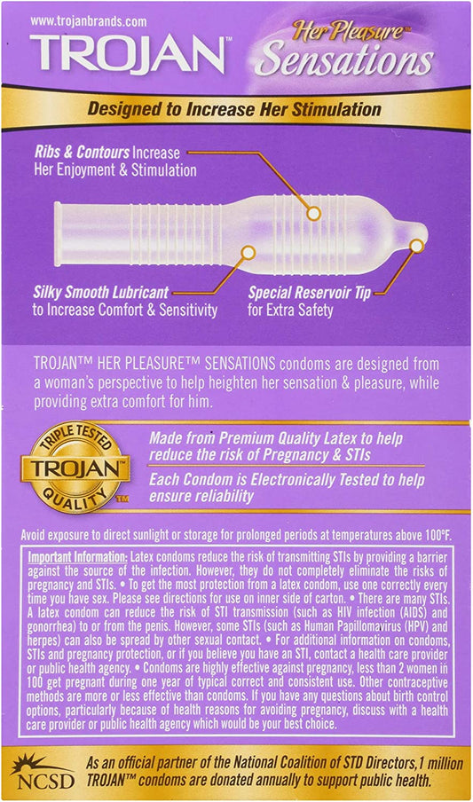 Trojan Her Pleasure Enhanced Stimulation For Her (12 Lubricated Latex Condoms) PACKAGING MAY VARY