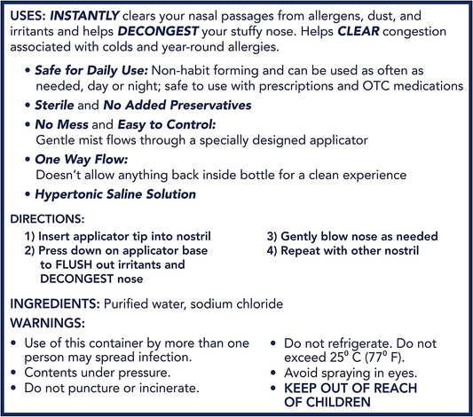 Vicks Sinex Saline Ultra Fine Nasal Mist Instantly Clears Everyday Congestion, 5.0 oz. / 142g