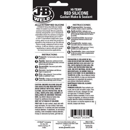 JB Weld Hi-Temp Red Silicone Gasket Maker & Sealant, 3.0 oz. / 85g (31314) NOT CARDED