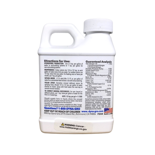 Dyna-Gro Grow Liquid Plant Food Enhance Plant Growth 7-9-5 8 Fl Oz (236.5ml)