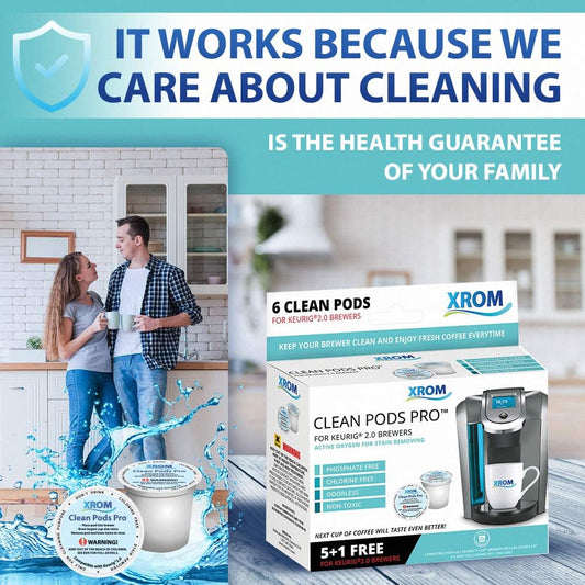 XROM Cleaning Pods Compatible With All Keurig K - Cup 2.0 Brewers, 6 Cup