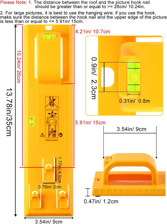Picture Hanging Tool with Level, Goodsnova Photo Frame Hanging Tool for Easy Marking Position, (Yellow)