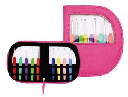 KnitPro Waves Single Ended Set of 9 Aluminum Crochet - Neon Pink Leatherette Case (30922)