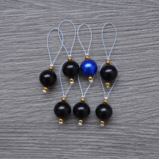 KnitPro ZOONI Stitch Markers in Coloured Beads - Pack of 7 including 1 Unique Marker in Midnight Beauty (10932)