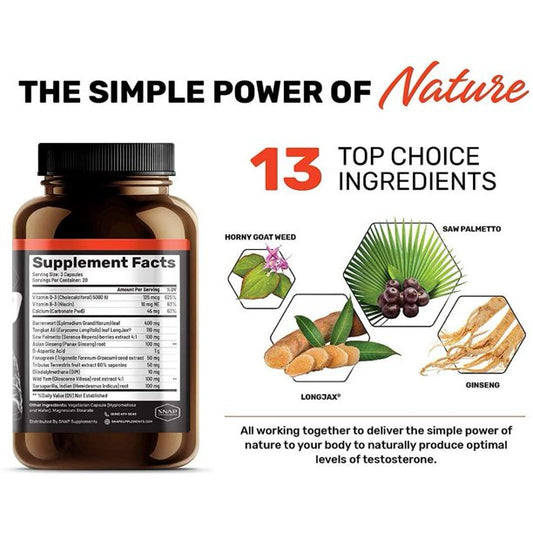 SNAP Supplements Testo Booster Acid + 14 Plants & Vitamins, 60 Capsules