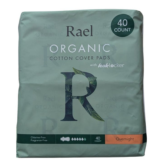 Rael Organic Cotton Cover Pads With Leak Locker Period Pads with Wings, Unscented, Overnight, 40 Pieces