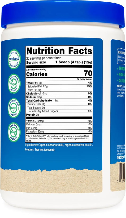 Nutricost Organic Unflavored Coconut Milk Powder Dietary Supplement, 454 g / 16.2 oz