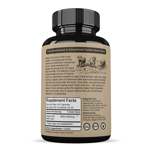 Wholesome Wellness Beef Liver Dietary Supplement, 180 Capsules