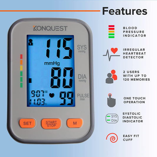 Konquest Automatic Upper Arm Blood Pressure Monitor Large Backlit Display 1 Count (KBP-2704A)