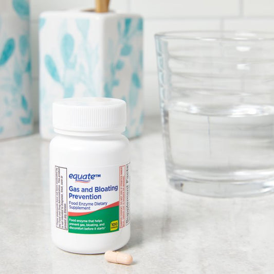Equate Gas and Bloating Prevention Food Enzyme Dietary Supplement, 100 Capsules