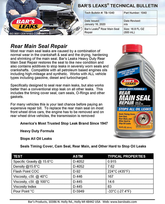 Bar's Leaks Concentrated Rear Main Seal Repair, 16.9 oz. / 500ml